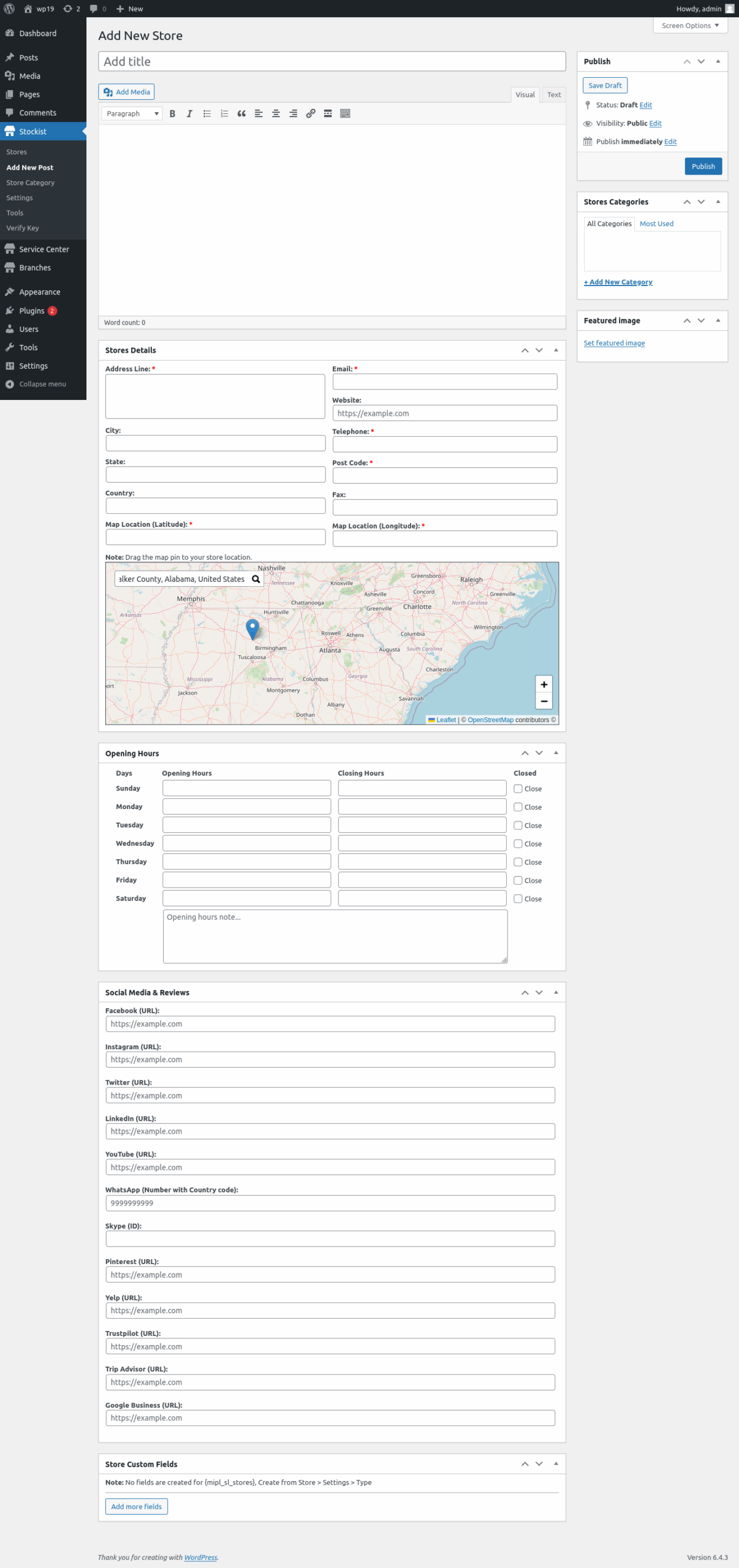 Add multiple Stores with (Address, Contact Details, Opening Hours, Store Image, Categories, Social Media Link).