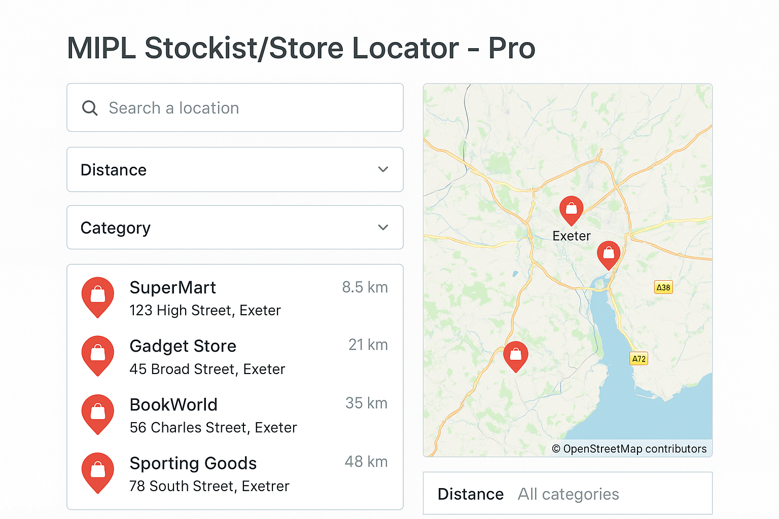 Stockist/Store Locator with Current Location, Distance & Categories Filter.